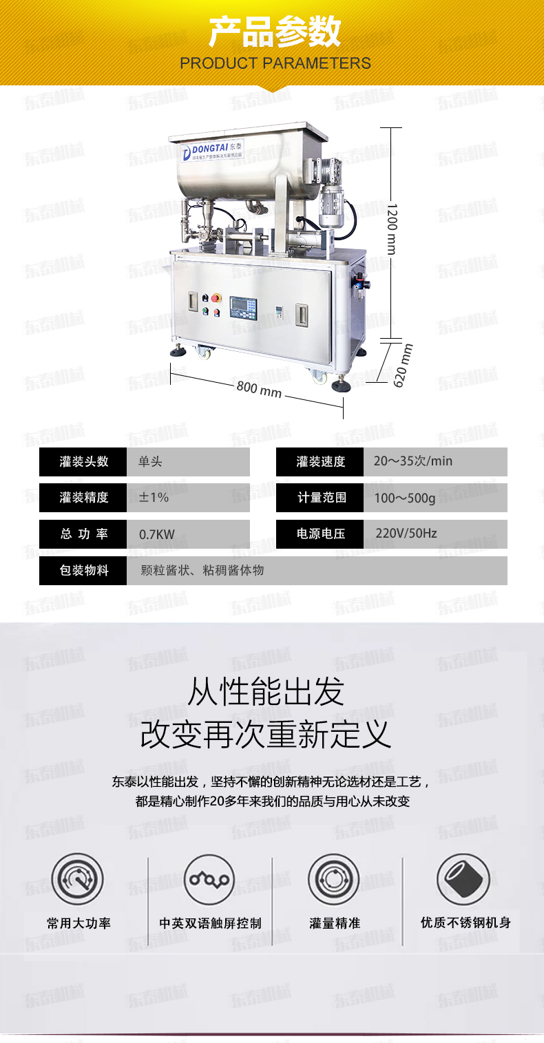 1.防滴漏灌裝頭:316L不銹鋼精制而成,專為醬料灌裝設(shè)計(jì),通過型好,內(nèi)外精拋,真正的食品級(jí)