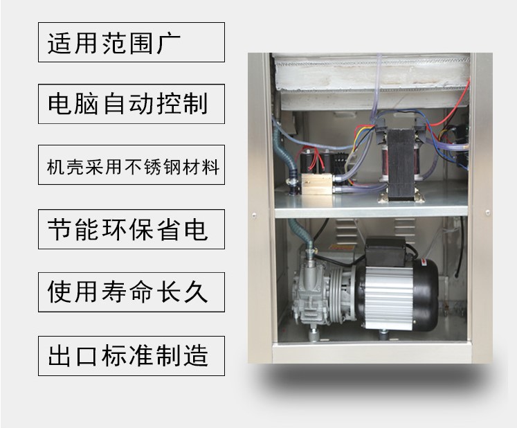 架體采用國際標準食品用304不銹鋼板,強度高,不易破損,它獨特的傾斜臺面設計,可以保證產品內的水份不流失,從而使產品的含水真空包裝更易操作。