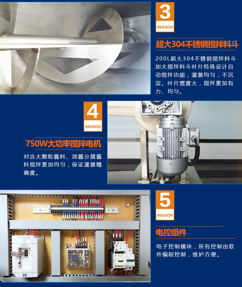 產品簡介:半自動醬類醬料灌裝機SFM系列結構合理、機型小巧、性能可靠、定量準確、操作方便。整機304不銹鋼,灌裝悶頭防漏料防滴油,氣缸驅動結構,加大200L料斗,品牌全鋁殼銅芯大功率攪拌電機,變頻調速,PLC智能控制,用戶可根據需要任意調節灌裝量及灌裝速度,灌裝精度高。