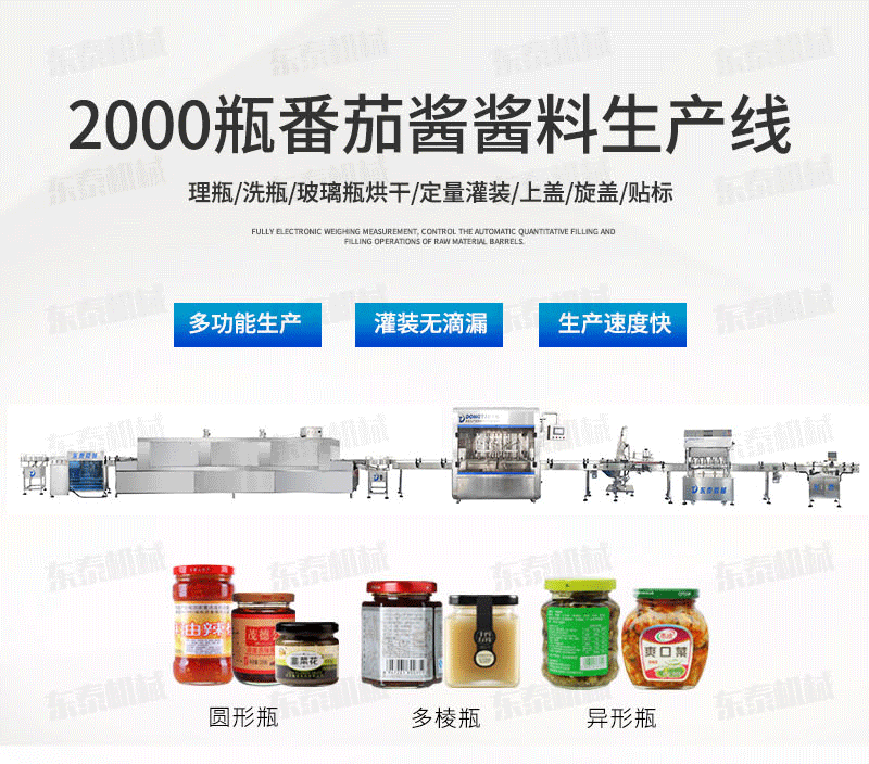 為了能夠更好的服務社會我們東泰辣椒醬灌裝機踏上了多樣化生產道路,并且現在已經有了一定的顯著成績,原來的傳統設備由于功能有所局限,只能灌裝普通的醬料,而經過我們改進后的全自動辣椒醬灌裝機能夠實現對市場上絕大多數的醬料的灌裝,尤其是那些含顆粒的顆粒漿狀流體、半流體、膏體、漿狀類的物料灌裝,如辣椒醬、牛肉醬、牛肉大醬、豆瓣醬、芝麻醬、果醬、火鍋底料的等物料的灌裝,在市場中,辣椒醬灌裝機有眾多的機會來展現出自我的風采,不僅是因為再市場中的廣泛應用,還有這十分出眾的全自動化的一鍵式的完成一系列的工作流程,更能夠凸顯出市場對于它自身的需求。